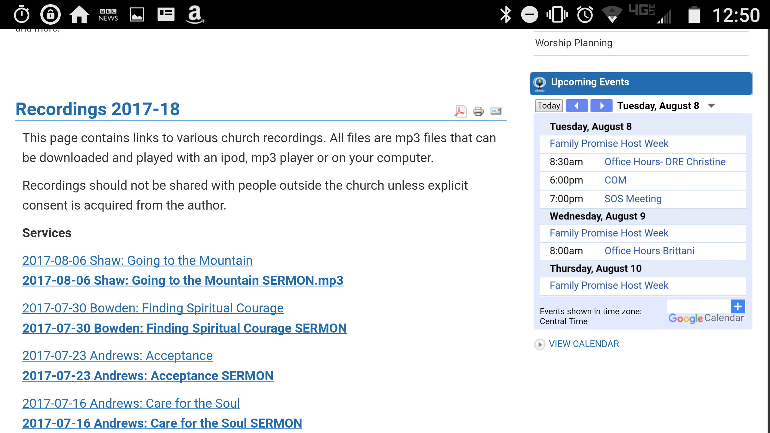 > I was unable to get to Aug 6th service, and really wanted to hear what Amy