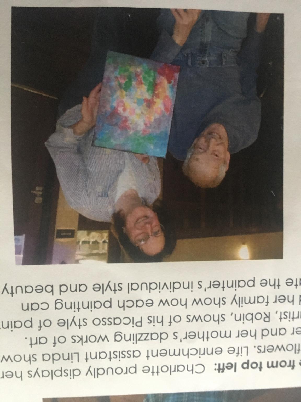 Robin Reed and Helen Bera made it into the newsletter for his memory care facility!