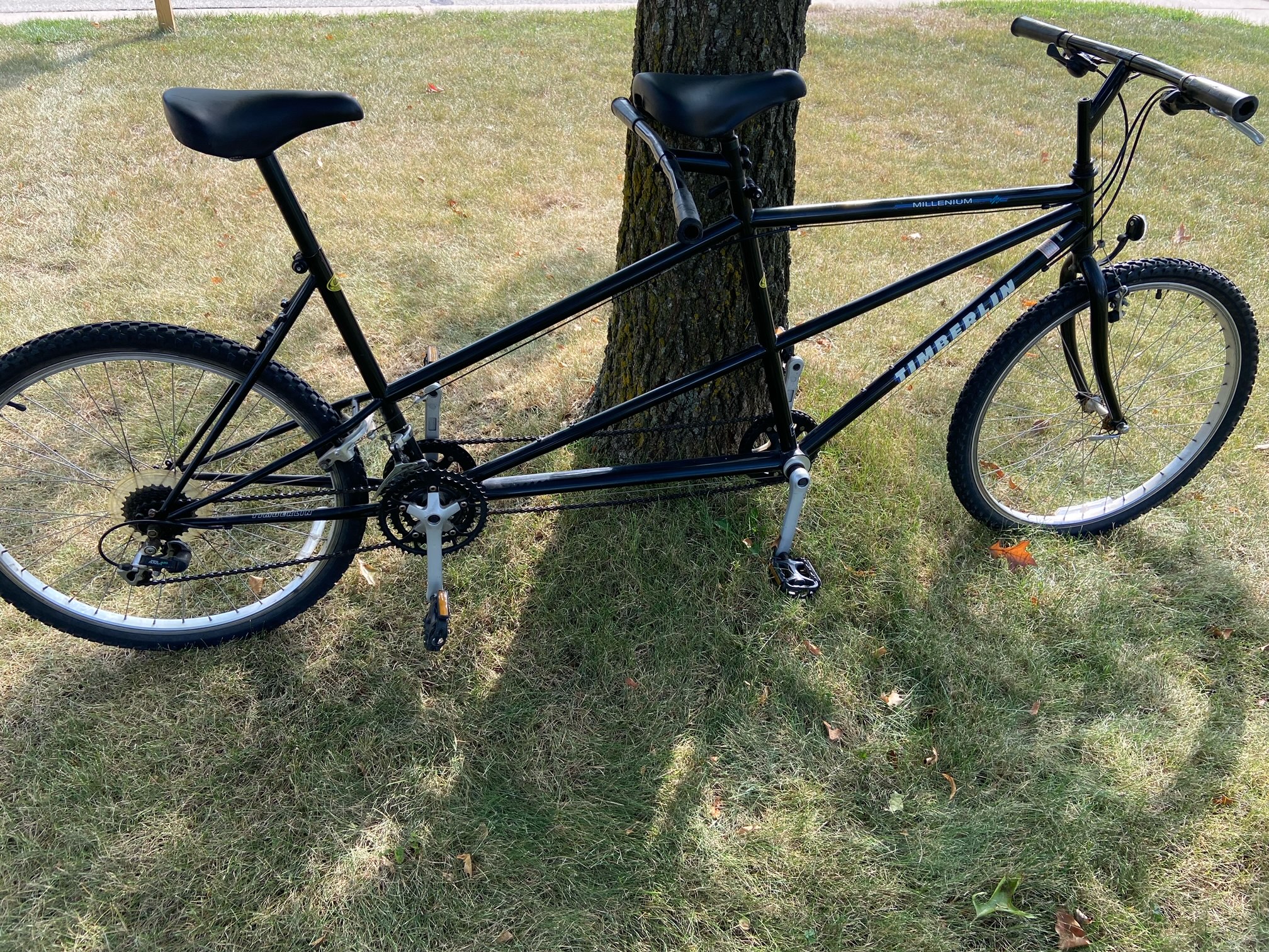 2014 Trek 3500, 18 “ Mt bike $200. It was Coles but he has out grown it. The Timberlin tandem is a circa 1990s model. It is in good riding shape no repairs needed on either bike.