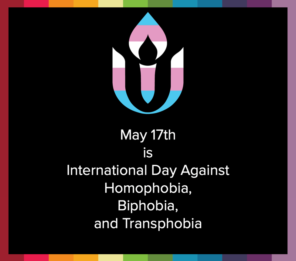 On International Day Against Homophobia, Biphobia, and Transphobia, Unitarian Universalists are unwavering in our solidarity with queer and trans people everywhere. We affirm that every individual, regardless of their sexual orientation or gender identity, is deserving of acceptance, love, dignity, and compassion.